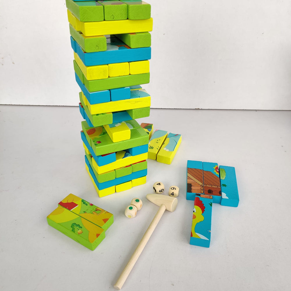 Our colorful building block games with bright, vibrant colors are loads of fun for young children. Itâ??s simple and easy games, helps develop hand & eye coordination, Strengthens fine motor skills, visual-spatial skills; Inspires creativity, promoting color recognition and fine motor skills, so as to inspire childrenâ??s imagination. 2 in 1: The set can be used as a puzzle where kids can make 3 picture puzzles or it can just be played as a regular tumbling tower game with friends and familty